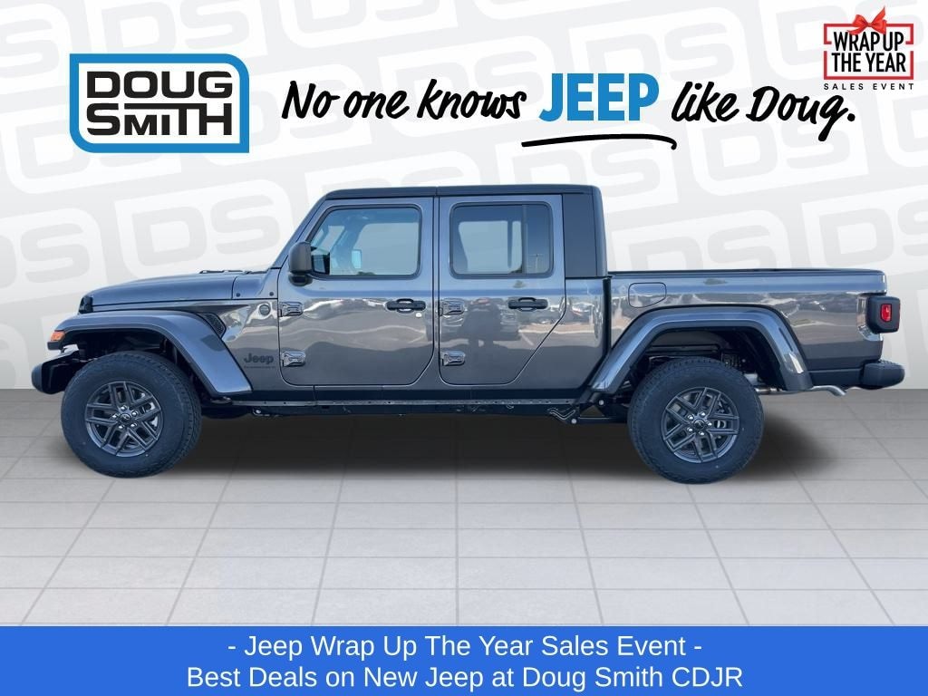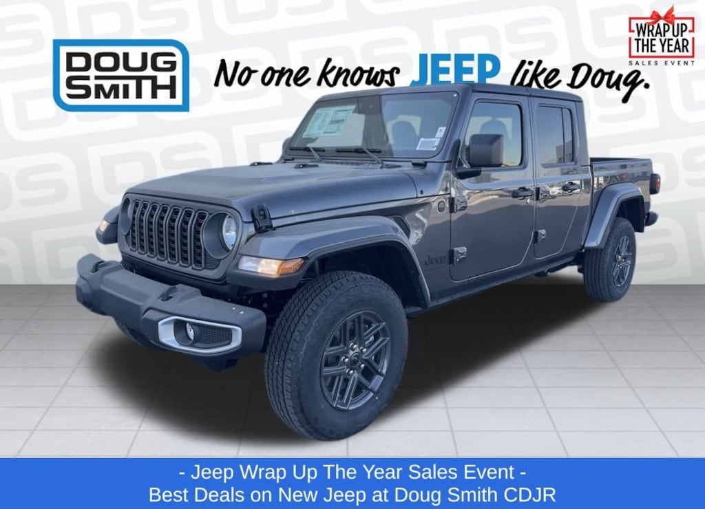 Granite Crystal Metallic Clearcoat 2025 Jeep Gladiator Sport S 4WD 8-Speed Automatic 3.6L V6 24V VVT Price includes: $1000 - 2025 West BC Retail Bonus Cash . Exp. 01/05/2026 $2250 - 2025 National Bonus Cash . Exp. 01/05/2026 - Sale Price Includes: $1,500 Trade-In Allowance Incentive Program for customers that trade in a 2015 or newer passenger vehicle with 100,000 miles or less. - Offer Exp. 01/05/2026 - See Doug Smith CDJR for full details. - Advertised Price reflects a $1,500 Financing Discount. To qualify for this discount, customer must secure credit approval and finance with a dealership lender. Cash purchases or outside financing will void the discount, increasing the final price by $1,500. Exp. 01/05/2026 - See Doug Smith CDJR for full details.
