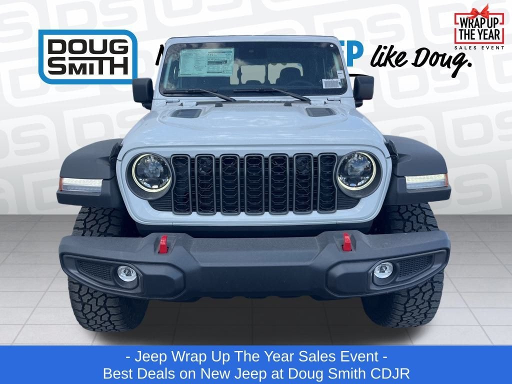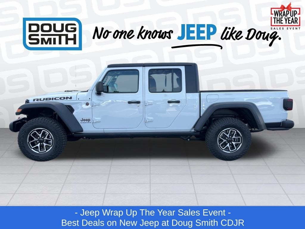 Bright White Clearcoat 2025 Jeep Gladiator Rubicon 4WD 8-Speed Automatic 3.6L V6 24V VVT Price includes: $2000 - 2025 National Holiday Select Inventory Bonus Cash. Exp. 01/05/2026 $5500 - 2025 National Bonus Cash . Exp. 01/05/2026 - Sale Price Includes: $1,500 Trade-In Allowance Incentive Program for customers that trade in a 2015 or newer passenger vehicle with 100,000 miles or less. - Offer Exp. 01/05/2026 - See Doug Smith CDJR for full details. - Advertised Price reflects a $1,500 Financing Discount. To qualify for this discount, customer must secure credit approval and finance with a dealership lender. Cash purchases or outside financing will void the discount, increasing the final price by $1,500. Exp. 01/05/2026 - See Doug Smith CDJR for full details.