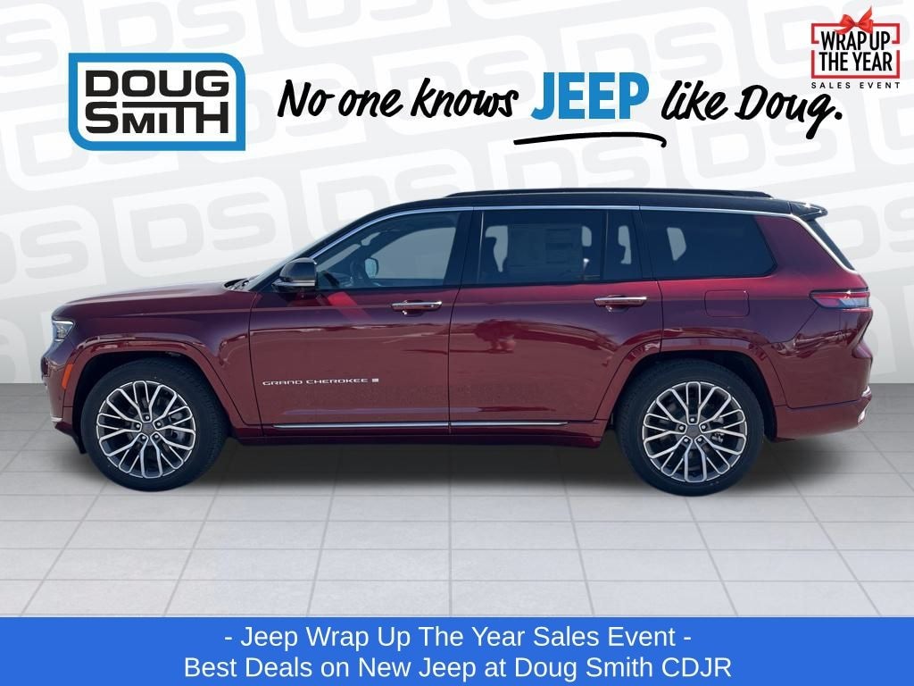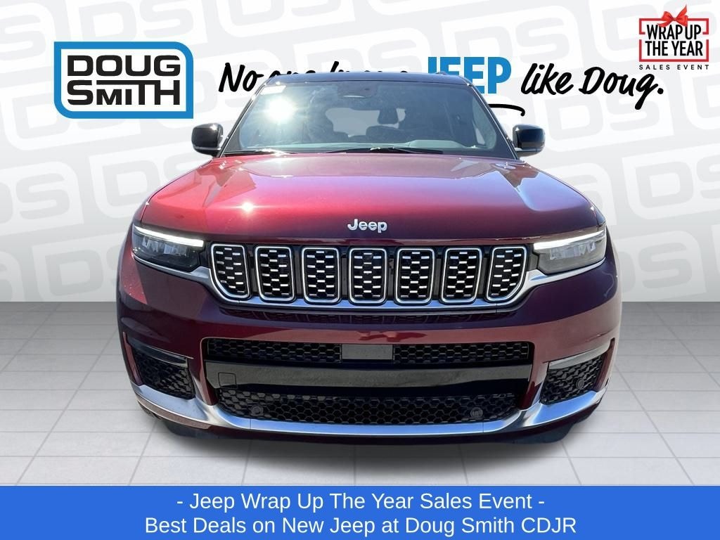 Velvet Red Pearlcoat 2025 Jeep Grand Cherokee L Summit 4WD 8-Speed Automatic 3.6L V6 24V VVT Price includes: $2500 - 2025 National Retail Bonus Cash . Exp. 01/05/2026 - Sale Price Includes: $1,500 Trade-In Allowance Incentive Program for customers that trade in a 2015 or newer passenger vehicle with 100,000 miles or less. - Offer Exp. 01/05/2026 - See Doug Smith CDJR for full details. - Advertised Price reflects a $1,500 Financing Discount. To qualify for this discount, customer must secure credit approval and finance with a dealership lender. Cash purchases or outside financing will void the discount, increasing the final price by $1,500. Exp. 01/05/2026 - See Doug Smith CDJR for full details.