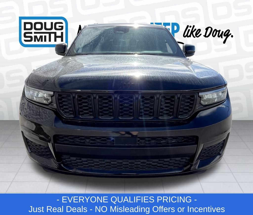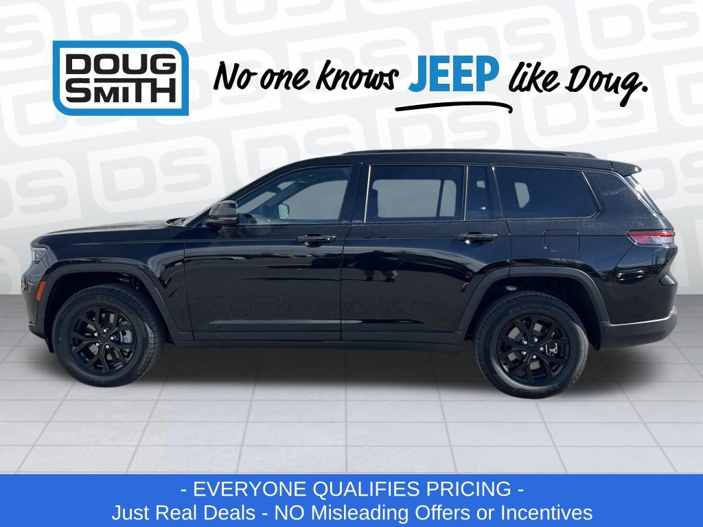 Diamond Black Crystal Pearlcoat 2025 Jeep Grand Cherokee L Altitude X 4WD 8-Speed Automatic 3.6L V6 24V VVT Price includes: $1000 - 2025 West BC SFS Bonus Cash. Exp. 03/02/2026 $2500 - 2025 National Retail Bonus Cash . Exp. 03/02/2026 - Advertised Price reflects a $1,500 Financing Discount. To qualify for this discount, customer must secure credit approval and finance with a dealership lender. Cash purchases or outside financing will void the discount, increasing the final price by $1,500. Exp. 02/28/2026 - See Doug Smith CDJR for full details. - Sale Price Includes: $1,500 Trade-In Allowance Incentive Program for customers that trade in a 2015 or newer passenger vehicle with 100,000 miles or less. - Offer Exp. 02/28/2026 - See Doug Smith CDJR for full details.