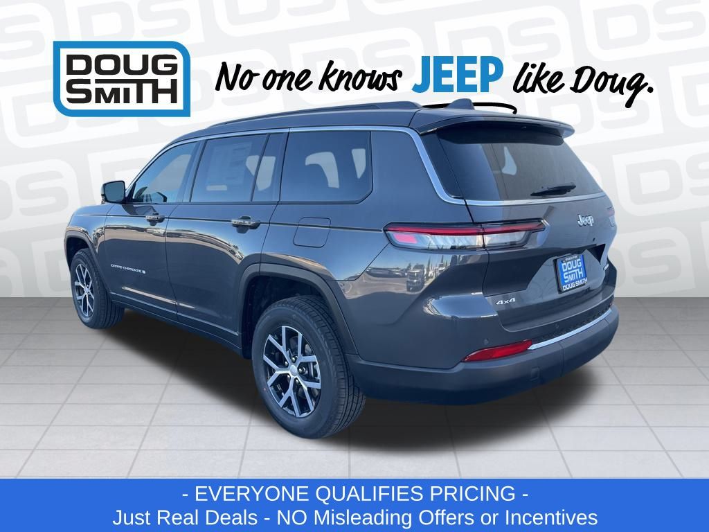 Baltic Gray Metallic Clearcoat 2025 Jeep Grand Cherokee L Limited 4WD 8-Speed Automatic 3.6L V6 24V VVT Price includes: $2500 - 2025 National Retail Bonus Cash . Exp. 03/02/2026 - Advertised Price reflects a $1,500 Financing Discount. To qualify for this discount, customer must secure credit approval and finance with a dealership lender. Cash purchases or outside financing will void the discount, increasing the final price by $1,500. Exp. 02/28/2026 - See Doug Smith CDJR for full details. - Sale Price Includes: $1,500 Trade-In Allowance Incentive Program for customers that trade in a 2015 or newer passenger vehicle with 100,000 miles or less. - Offer Exp. 02/28/2026 - See Doug Smith CDJR for full details.
