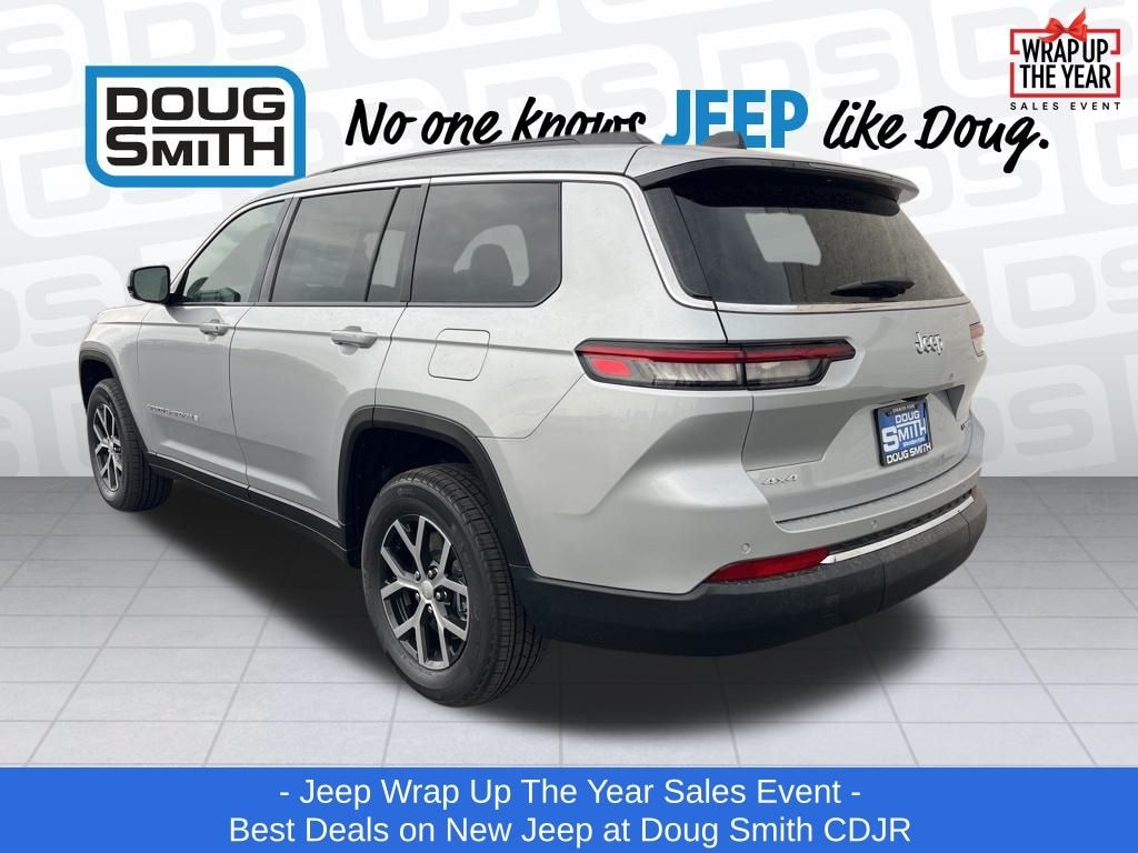 Silver Zynith 2025 Jeep Grand Cherokee L Limited 4WD 8-Speed Automatic 3.6L V6 24V VVT Price includes: $2500 - 2025 National Retail Bonus Cash . Exp. 01/05/2026 - Sale Price Includes: $1,500 Trade-In Allowance Incentive Program for customers that trade in a 2015 or newer passenger vehicle with 100,000 miles or less. - Offer Exp. 01/05/2026 - See Doug Smith CDJR for full details. - Advertised Price reflects a $1,500 Financing Discount. To qualify for this discount, customer must secure credit approval and finance with a dealership lender. Cash purchases or outside financing will void the discount, increasing the final price by $1,500. Exp. 01/05/2026 - See Doug Smith CDJR for full details.