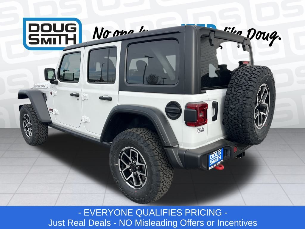 Bright White Clearcoat 2026 Jeep Wrangler Rubicon 4WD 8-Speed Automatic 2.0L I4 DOHC Price includes: $1500 - 2026 National Select Inventory Bonus Cash . Exp. 01/04/2027 $2000 - 2026 National Select Inventory Bonus Cash. Exp. 03/02/2026 - Advertised Price reflects a $1,500 Financing Discount. To qualify for this discount, customer must secure credit approval and finance with a dealership lender. Cash purchases or outside financing will void the discount, increasing the final price by $1,500. Exp. 02/28/2026 - See Doug Smith CDJR for full details. - Sale Price Includes: $1,500 Trade-In Allowance Incentive Program for customers that trade in a 2015 or newer passenger vehicle with 100,000 miles or less. - Offer Exp. 02/28/2026 - See Doug Smith CDJR for full details.