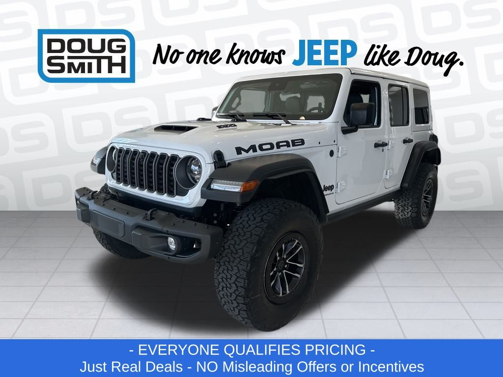 bright white clearcoat 2026 Jeep Wrangler 4WD 8-Speed Automatic SRT HEMI 6.4L V8 MDS Price includes: - Advertised Price reflects a $1,500 Financing Discount. To qualify for this discount, customer must secure credit approval and finance with a dealership lender. Cash purchases or outside financing will void the discount, increasing the final price by $1,500. Exp. 02/28/2026 - See Doug Smith CDJR for full details. - Sale Price Includes: $1,500 Trade-In Allowance Incentive Program for customers that trade in a 2015 or newer passenger vehicle with 100,000 miles or less. - Offer Exp. 02/28/2026 - See Doug Smith CDJR for full details.