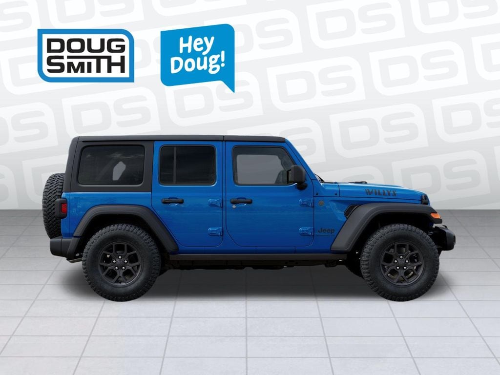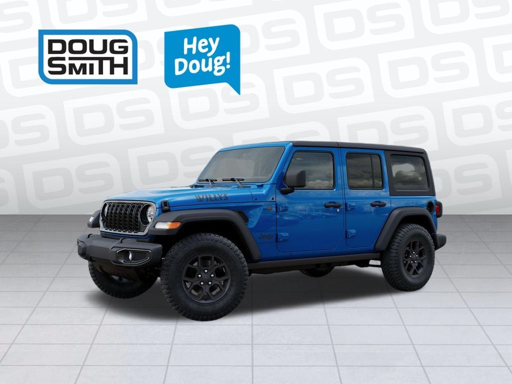 Hydro Blue Pearl Coat 2026 Jeep Wrangler Willys 4WD 8-Speed Automatic 3.6L V6 24V VVT Price includes: $1000 - 2026 National Retail Bonus Cash . Exp. 04/30/2026 $1000 - 2026 West BC Regional Bonus Cash . Exp. 04/30/2026 - Sale Price Includes: $1,500 Trade-In Allowance Incentive Program for customers that trade in a 2015 or newer passenger vehicle with 100,000 miles or less. - Offer Exp. 04/30/2026 - See Doug Smith CDJR for full details.