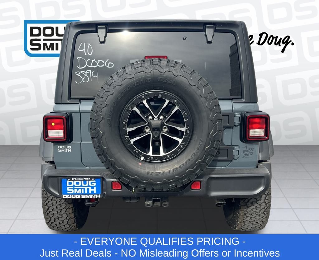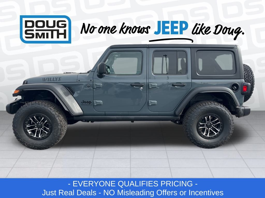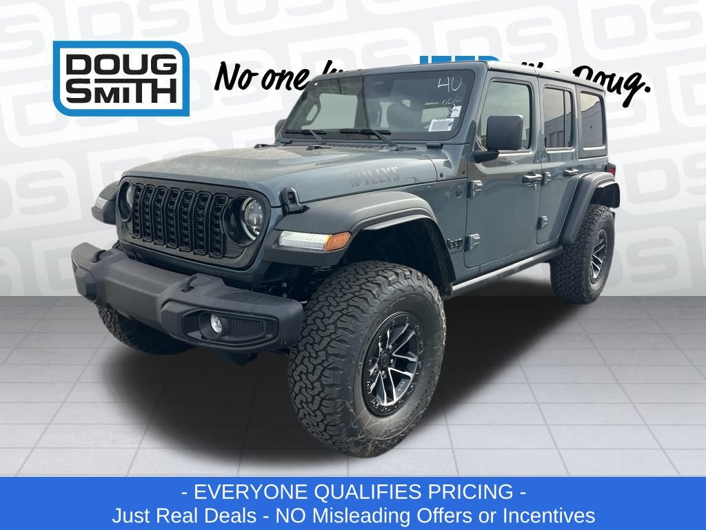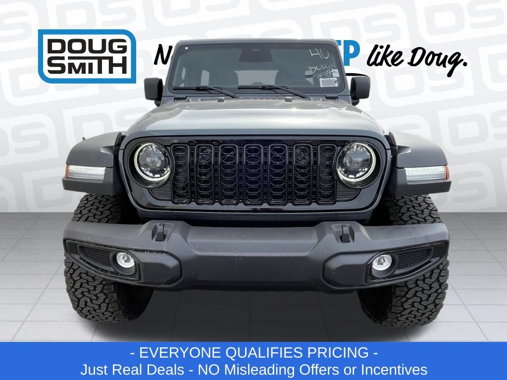 Anvil Clear Coat 2026 Jeep Wrangler Willys 4WD 8-Speed Automatic 2.0L I4 DOHC Price includes: $2000 - 2026 National Select Inventory Bonus Cash. Exp. 03/02/2026 $2500 - 2026 National Select Inventory Bonus Cash. Exp. 01/04/2027 - Advertised Price reflects a $1,500 Financing Discount. To qualify for this discount, customer must secure credit approval and finance with a dealership lender. Cash purchases or outside financing will void the discount, increasing the final price by $1,500. Exp. 02/28/2026 - See Doug Smith CDJR for full details. - Sale Price Includes: $1,500 Trade-In Allowance Incentive Program for customers that trade in a 2015 or newer passenger vehicle with 100,000 miles or less. - Offer Exp. 02/28/2026 - See Doug Smith CDJR for full details.
