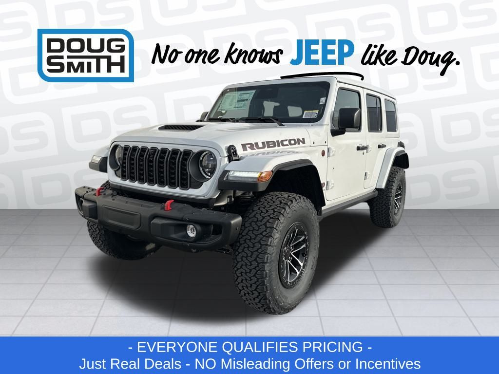 Bright White Clearcoat 2026 Jeep Wrangler Rubicon X 4WD 8-Speed Automatic 3.6L V6 24V VVT Price includes: - Advertised Price reflects a $1,500 Financing Discount. To qualify for this discount, customer must secure credit approval and finance with a dealership lender. Cash purchases or outside financing will void the discount, increasing the final price by $1,500. Exp. 02/28/2026 - See Doug Smith CDJR for full details. - Sale Price Includes: $1,500 Trade-In Allowance Incentive Program for customers that trade in a 2015 or newer passenger vehicle with 100,000 miles or less. - Offer Exp. 02/28/2026 - See Doug Smith CDJR for full details.