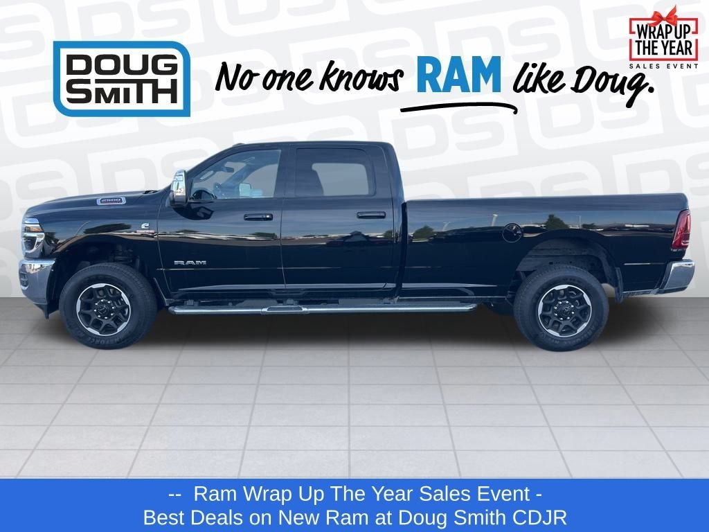 Diamond Black Crystal Pearlcoat 2025 Ram 2500 Laramie 4WD 8-Speed Automatic 6.7L I6 Price includes: $2000 - 2025 National Bonus Cash . Exp. 01/05/2026 $2000 - 2025 National Holiday Select Inventory Bonus Cash. Exp. 01/05/2026 - Sale Price Includes: $1,500 Trade-In Allowance Incentive Program for customers that trade in a 2015 or newer passenger vehicle with 100,000 miles or less. - Offer Exp. 01/05/2026 - See Doug Smith CDJR for full details. - Advertised Price reflects a $1,500 Financing Discount. To qualify for this discount, customer must secure credit approval and finance with a dealership lender. Cash purchases or outside financing will void the discount, increasing the final price by $1,500. Exp. 01/05/2026 - See Doug Smith CDJR for full details.