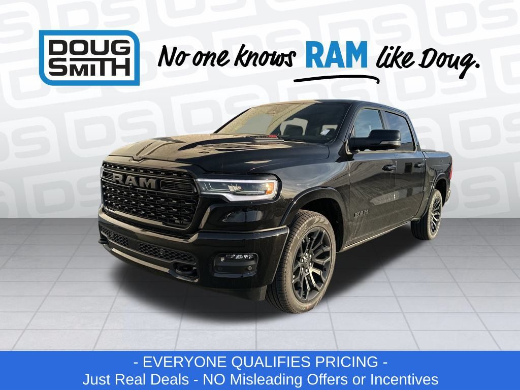 Diamond Black Crystal Pearlcoat 2026 Ram 1500 Limited 4WD 8-Speed Automatic 3.0L I6 Price includes: $1000 - 2026 National Bonus Cash . Exp. 03/02/2026 $3500 - 2026 National Retail Consumer Cash . Exp. 03/02/2026 - Advertised Price reflects a $1,500 Financing Discount. To qualify for this discount, customer must secure credit approval and finance with a dealership lender. Cash purchases or outside financing will void the discount, increasing the final price by $1,500. Exp. 02/28/2026 - See Doug Smith CDJR for full details. - Sale Price Includes: $1,500 Trade-In Allowance Incentive Program for customers that trade in a 2015 or newer passenger vehicle with 100,000 miles or less. - Offer Exp. 02/28/2026 - See Doug Smith CDJR for full details.