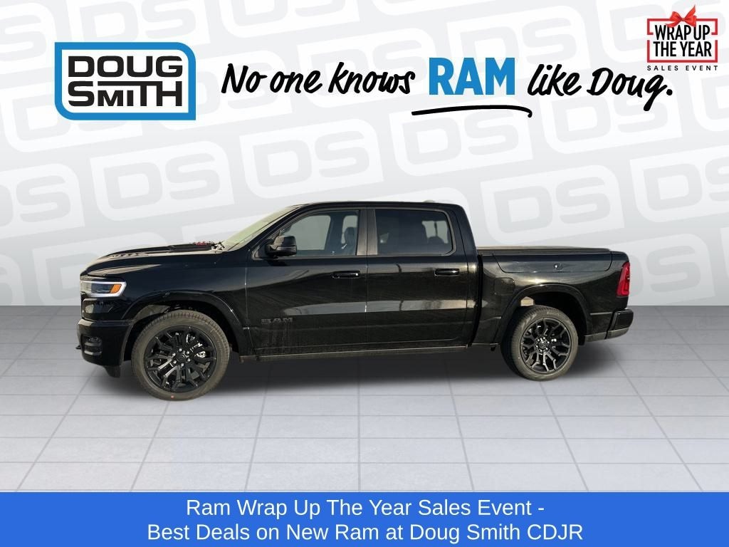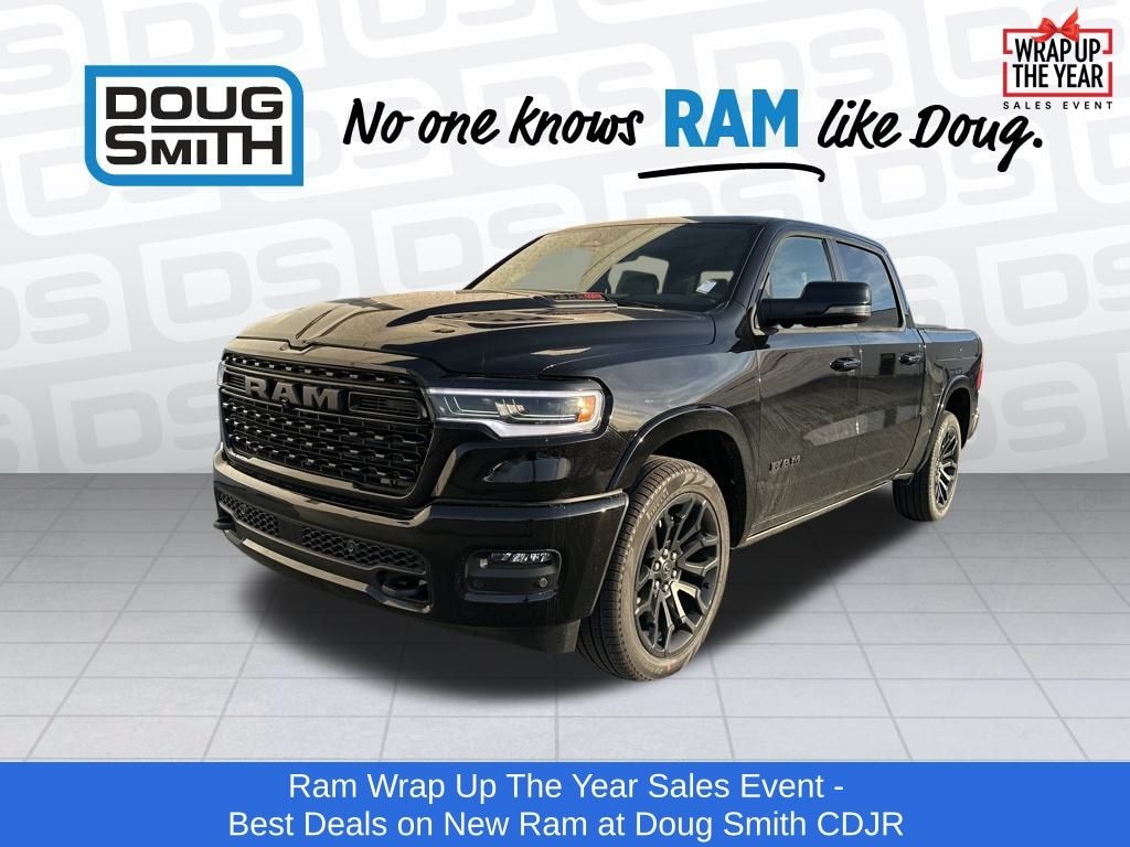 Diamond Black Crystal Pearlcoat 2026 Ram 1500 Limited 4WD 8-Speed Automatic 3.0L I6 Price includes: $3500 - 2026 National Retail Consumer Cash . Exp. 01/05/2026 - Sale Price Includes: $1,500 Trade-In Allowance Incentive Program for customers that trade in a 2015 or newer passenger vehicle with 100,000 miles or less. - Offer Exp. 01/05/2026 - See Doug Smith CDJR for full details. - Advertised Price reflects a $1,500 Financing Discount. To qualify for this discount, customer must secure credit approval and finance with a dealership lender. Cash purchases or outside financing will void the discount, increasing the final price by $1,500. Exp. 01/05/2026 - See Doug Smith CDJR for full details.