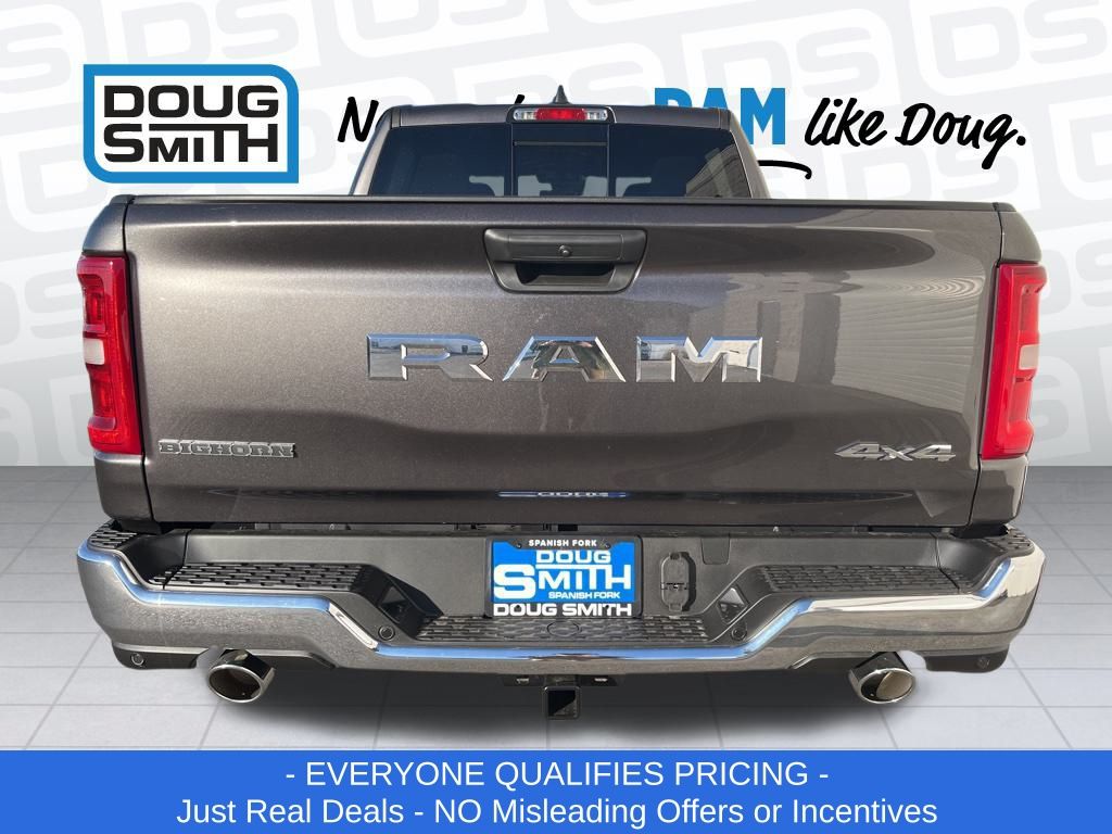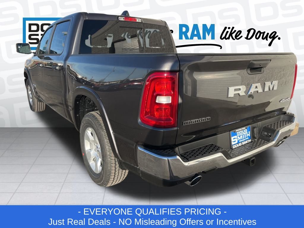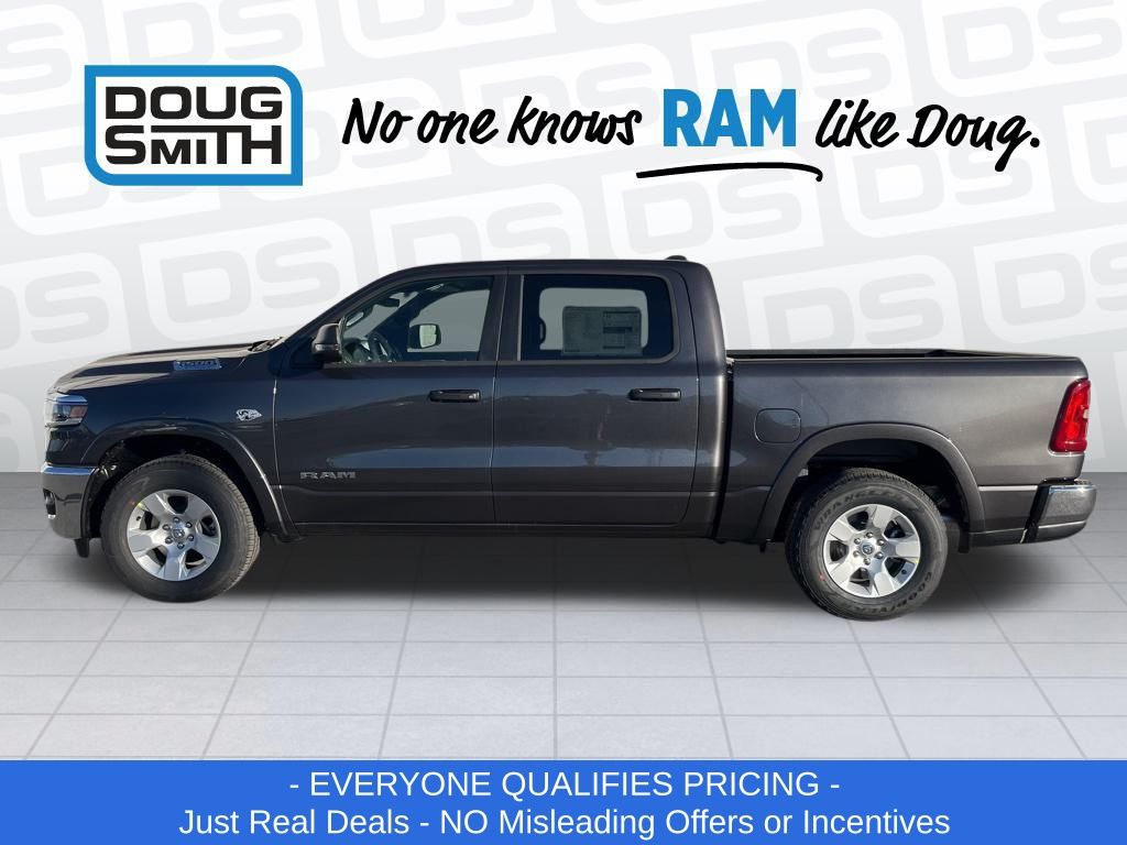 Granite Crystal Metallic Clearcoat 2026 Ram 1500 Big Horn/Lone Star 4WD 8-Speed Automatic HEMI 5.7L V8 Multi Displacement VVT eTorque Price includes: $2000 - 2026 National Select Inventory Bonus Cash. Exp. 03/02/2026 $3500 - 2026 National Retail Consumer Cash . Exp. 03/02/2026 - Advertised Price reflects a $1,500 Financing Discount. To qualify for this discount, customer must secure credit approval and finance with a dealership lender. Cash purchases or outside financing will void the discount, increasing the final price by $1,500. Exp. 02/28/2026 - See Doug Smith CDJR for full details. - Sale Price Includes: $1,500 Trade-In Allowance Incentive Program for customers that trade in a 2015 or newer passenger vehicle with 100,000 miles or less. - Offer Exp. 02/28/2026 - See Doug Smith CDJR for full details.