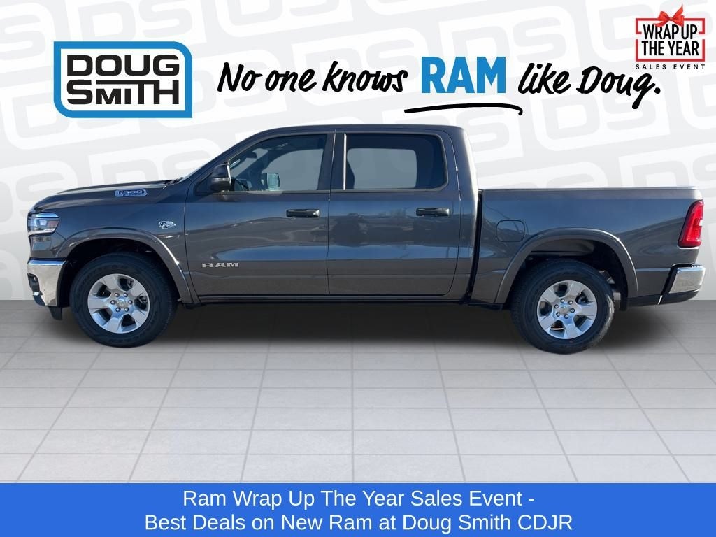 Granite Crystal Metallic Clearcoat 2026 Ram 1500 Big Horn/Lone Star 4WD 8-Speed Automatic HEMI 5.7L V8 Multi Displacement VVT eTorque Price includes: $3500 - 2026 National Retail Consumer Cash . Exp. 01/05/2026 - Sale Price Includes: $1,500 Trade-In Allowance Incentive Program for customers that trade in a 2015 or newer passenger vehicle with 100,000 miles or less. - Offer Exp. 01/05/2026 - See Doug Smith CDJR for full details. - Advertised Price reflects a $1,500 Financing Discount. To qualify for this discount, customer must secure credit approval and finance with a dealership lender. Cash purchases or outside financing will void the discount, increasing the final price by $1,500. Exp. 01/05/2026 - See Doug Smith CDJR for full details.