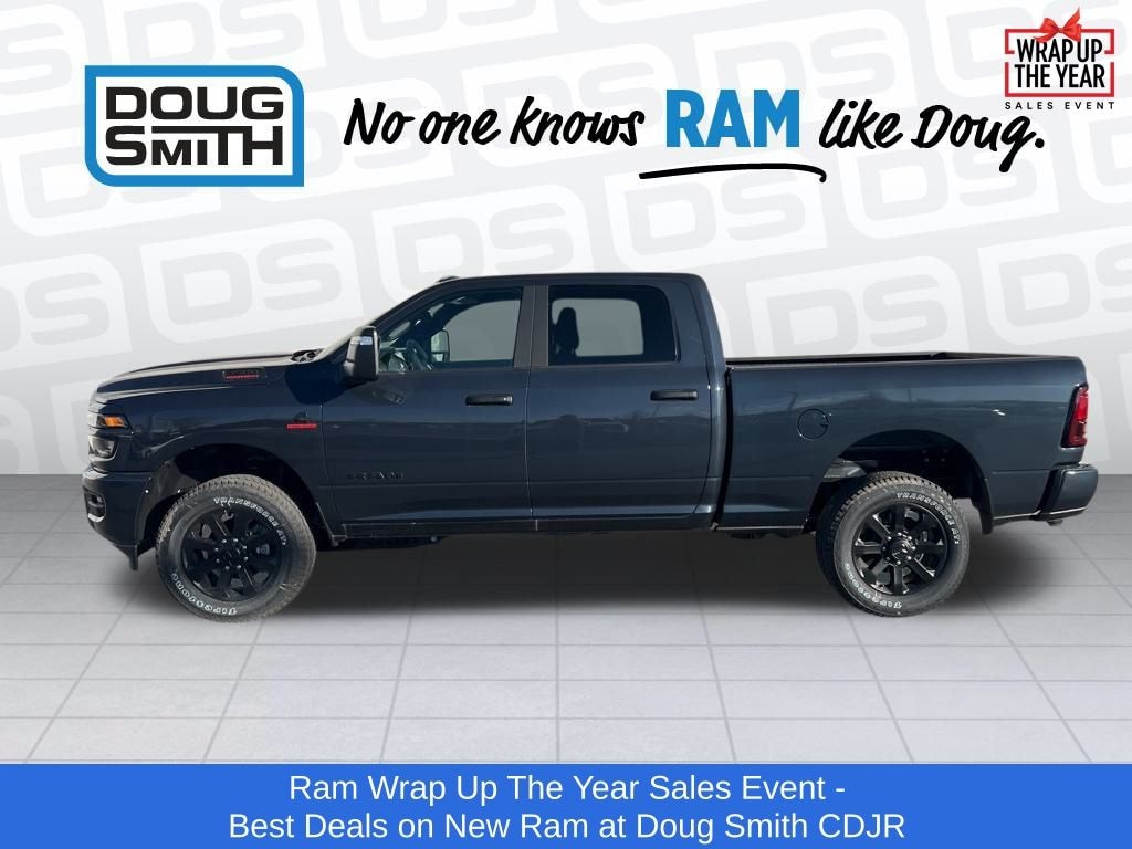 Forged Blue Metallic 2026 Ram 2500 Big Horn 4WD 8-Speed Automatic 6.7L I6 Price includes: $1000 - 2026 National Bonus Cash . Exp. 01/05/2026 - Sale Price Includes: $1,500 Trade-In Allowance Incentive Program for customers that trade in a 2015 or newer passenger vehicle with 100,000 miles or less. - Offer Exp. 01/05/2026 - See Doug Smith CDJR for full details. - Advertised Price reflects a $1,500 Financing Discount. To qualify for this discount, customer must secure credit approval and finance with a dealership lender. Cash purchases or outside financing will void the discount, increasing the final price by $1,500. Exp. 01/05/2026 - See Doug Smith CDJR for full details.