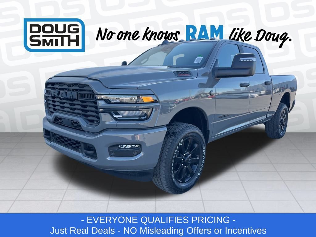 Ceramic Gray Clearcoat 2026 Ram 2500 Big Horn 4WD 8-Speed Automatic 6.7L I6 Price includes: $1000 - 2026 National Bonus Cash . Exp. 03/02/2026 - Advertised Price reflects a $1,500 Financing Discount. To qualify for this discount, customer must secure credit approval and finance with a dealership lender. Cash purchases or outside financing will void the discount, increasing the final price by $1,500. Exp. 02/28/2026 - See Doug Smith CDJR for full details. - Sale Price Includes: $1,500 Trade-In Allowance Incentive Program for customers that trade in a 2015 or newer passenger vehicle with 100,000 miles or less. - Offer Exp. 02/28/2026 - See Doug Smith CDJR for full details.