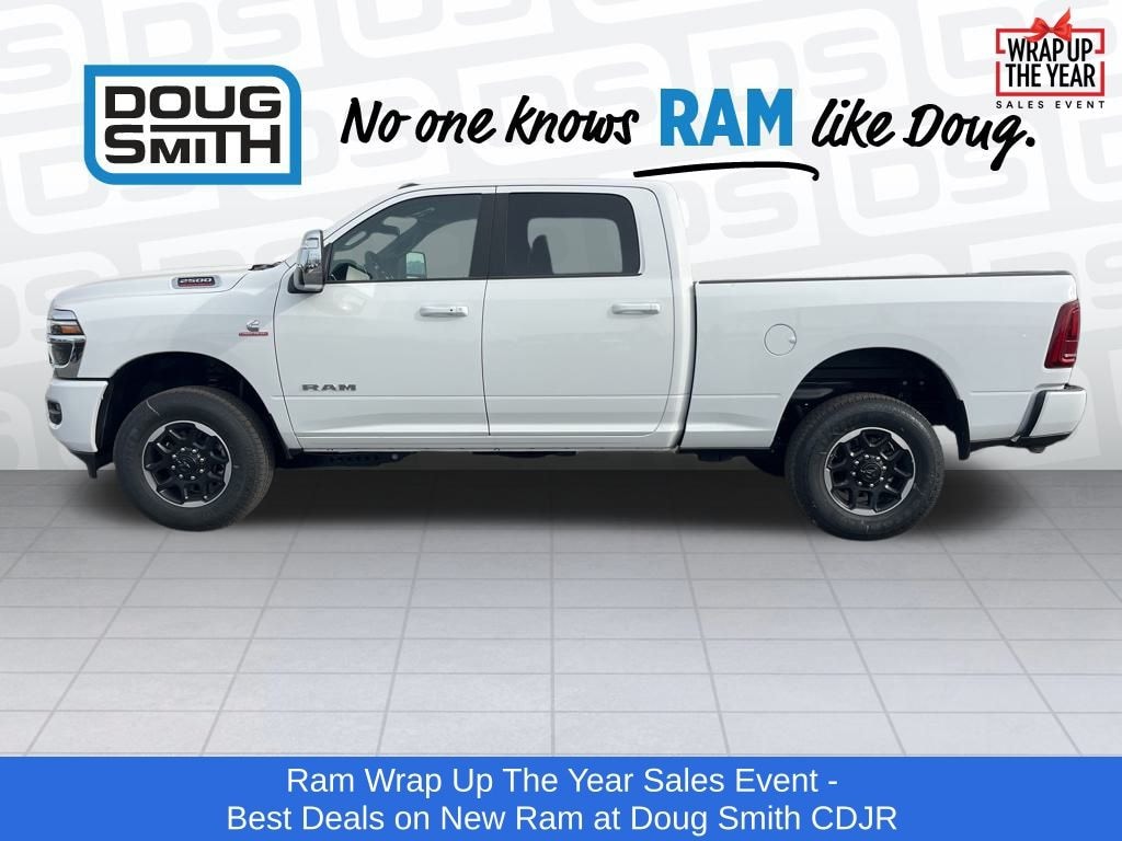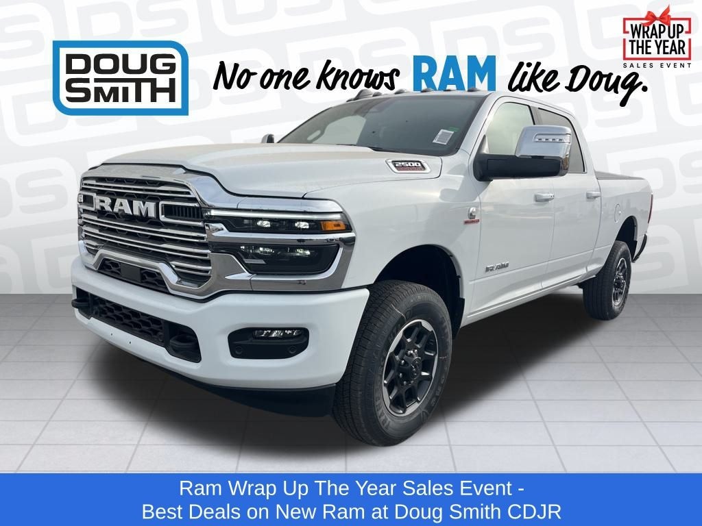 Bright White Clearcoat 2026 Ram 2500 Laramie 4WD 8-Speed Automatic 6.7L I6 Price includes: $1000 - 2026 National Bonus Cash . Exp. 01/05/2026 - Sale Price Includes: $1,500 Trade-In Allowance Incentive Program for customers that trade in a 2015 or newer passenger vehicle with 100,000 miles or less. - Offer Exp. 01/05/2026 - See Doug Smith CDJR for full details. - Advertised Price reflects a $1,500 Financing Discount. To qualify for this discount, customer must secure credit approval and finance with a dealership lender. Cash purchases or outside financing will void the discount, increasing the final price by $1,500. Exp. 01/05/2026 - See Doug Smith CDJR for full details.