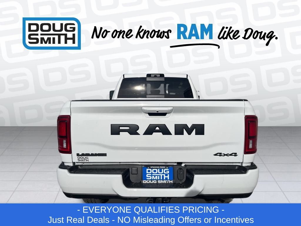 Bright White Clearcoat 2026 Ram 2500 Laramie 4WD 8-Speed Automatic 6.7L I6 Price includes: $1000 - 2026 National Bonus Cash . Exp. 03/02/2026 - Advertised Price reflects a $1,500 Financing Discount. To qualify for this discount, customer must secure credit approval and finance with a dealership lender. Cash purchases or outside financing will void the discount, increasing the final price by $1,500. Exp. 02/28/2026 - See Doug Smith CDJR for full details. - Sale Price Includes: $1,500 Trade-In Allowance Incentive Program for customers that trade in a 2015 or newer passenger vehicle with 100,000 miles or less. - Offer Exp. 02/28/2026 - See Doug Smith CDJR for full details.