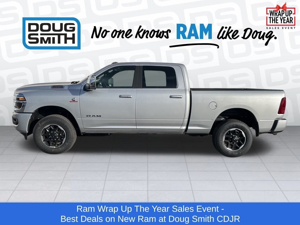 Silver Zynith 2026 Ram 2500 Laramie 4WD 8-Speed Automatic 6.7L I6 Price includes: $1000 - 2026 National Bonus Cash . Exp. 01/05/2026 - Sale Price Includes: $1,500 Trade-In Allowance Incentive Program for customers that trade in a 2015 or newer passenger vehicle with 100,000 miles or less. - Offer Exp. 01/05/2026 - See Doug Smith CDJR for full details. - Advertised Price reflects a $1,500 Financing Discount. To qualify for this discount, customer must secure credit approval and finance with a dealership lender. Cash purchases or outside financing will void the discount, increasing the final price by $1,500. Exp. 01/05/2026 - See Doug Smith CDJR for full details.