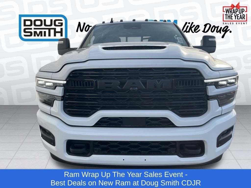 Bright White Clearcoat 2026 Ram 2500 Laramie 4WD 8-Speed Automatic 6.7L I6 Price includes: $1000 - 2026 National Bonus Cash . Exp. 01/05/2026 - Sale Price Includes: $1,500 Trade-In Allowance Incentive Program for customers that trade in a 2015 or newer passenger vehicle with 100,000 miles or less. - Offer Exp. 01/05/2026 - See Doug Smith CDJR for full details. - Advertised Price reflects a $1,500 Financing Discount. To qualify for this discount, customer must secure credit approval and finance with a dealership lender. Cash purchases or outside financing will void the discount, increasing the final price by $1,500. Exp. 01/05/2026 - See Doug Smith CDJR for full details.