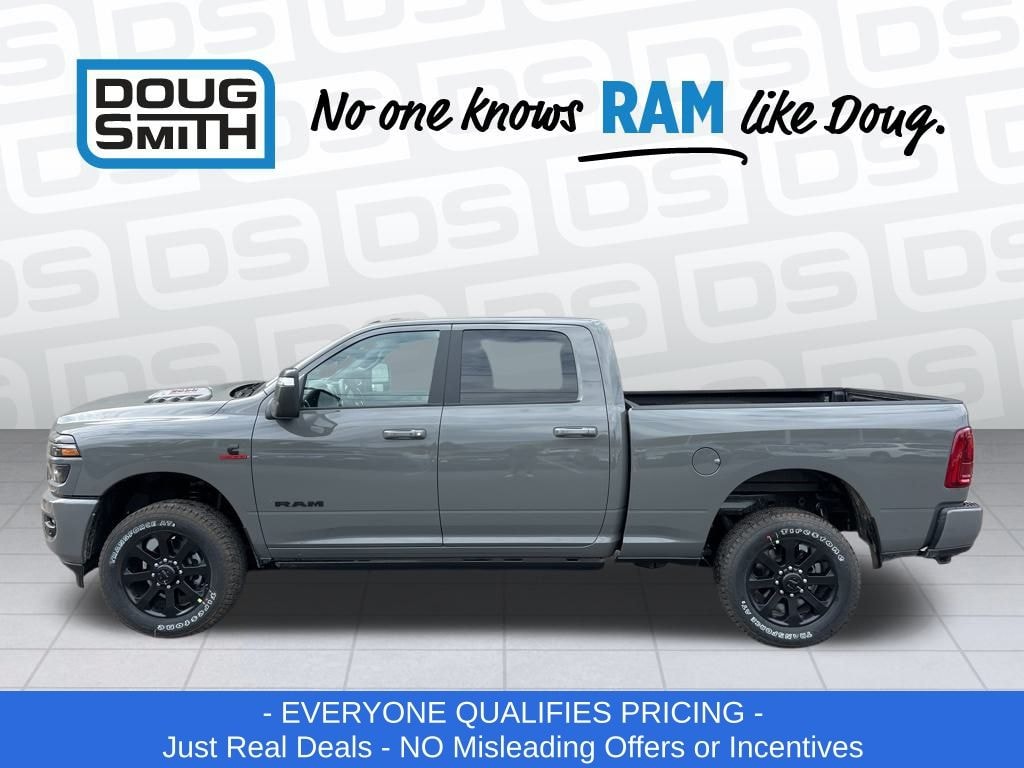 Ceramic Gray Clearcoat 2026 Ram 2500 Laramie 4WD 8-Speed Automatic 6.7L I6 Price includes: $1000 - 2026 National Bonus Cash . Exp. 02/02/2026 - Sale Price Includes: $1,500 Trade-In Allowance Incentive Program for customers that trade in a 2015 or newer passenger vehicle with 100,000 miles or less. - Offer Exp. 01/31/2026 - See Doug Smith CDJR for full details. - Advertised Price reflects a $1,500 Financing Discount. To qualify for this discount, customer must secure credit approval and finance with a dealership lender. Cash purchases or outside financing will void the discount, increasing the final price by $1,500. Exp. 01/31/2026 - See Doug Smith CDJR for full details.