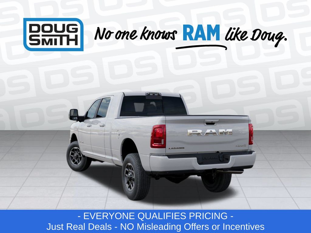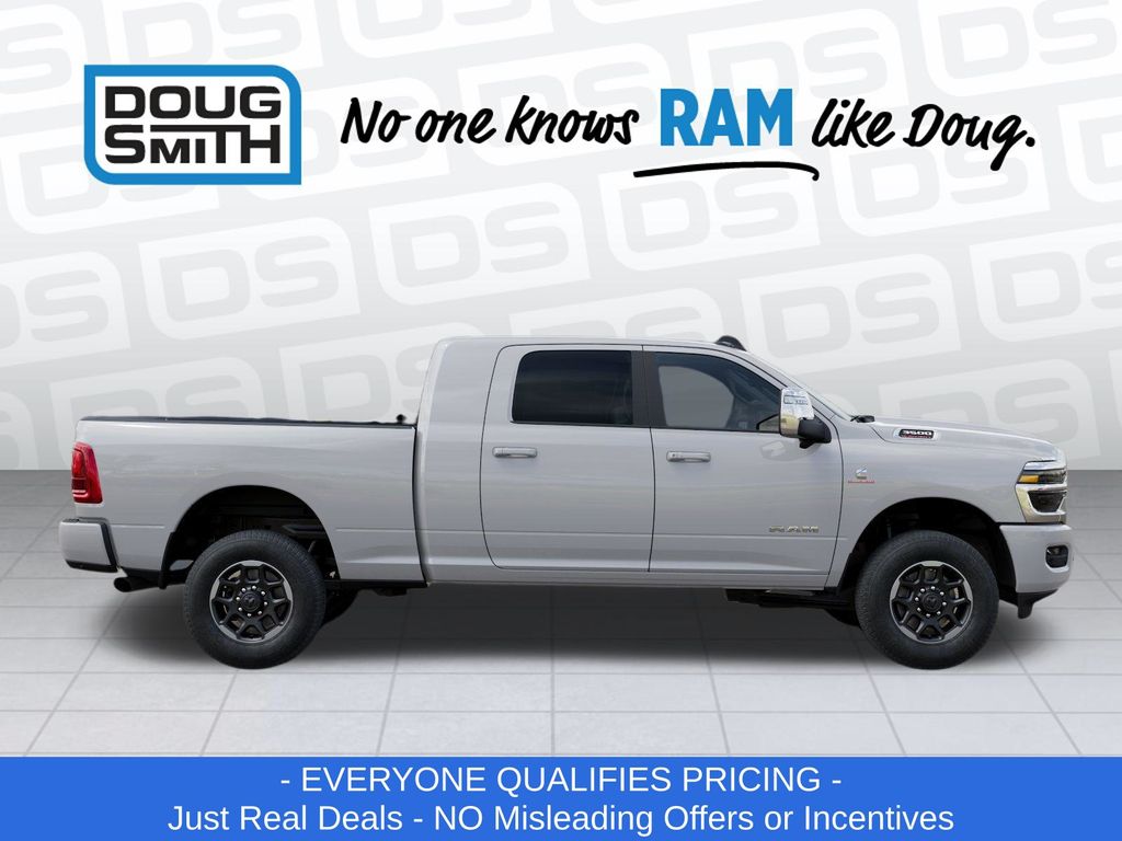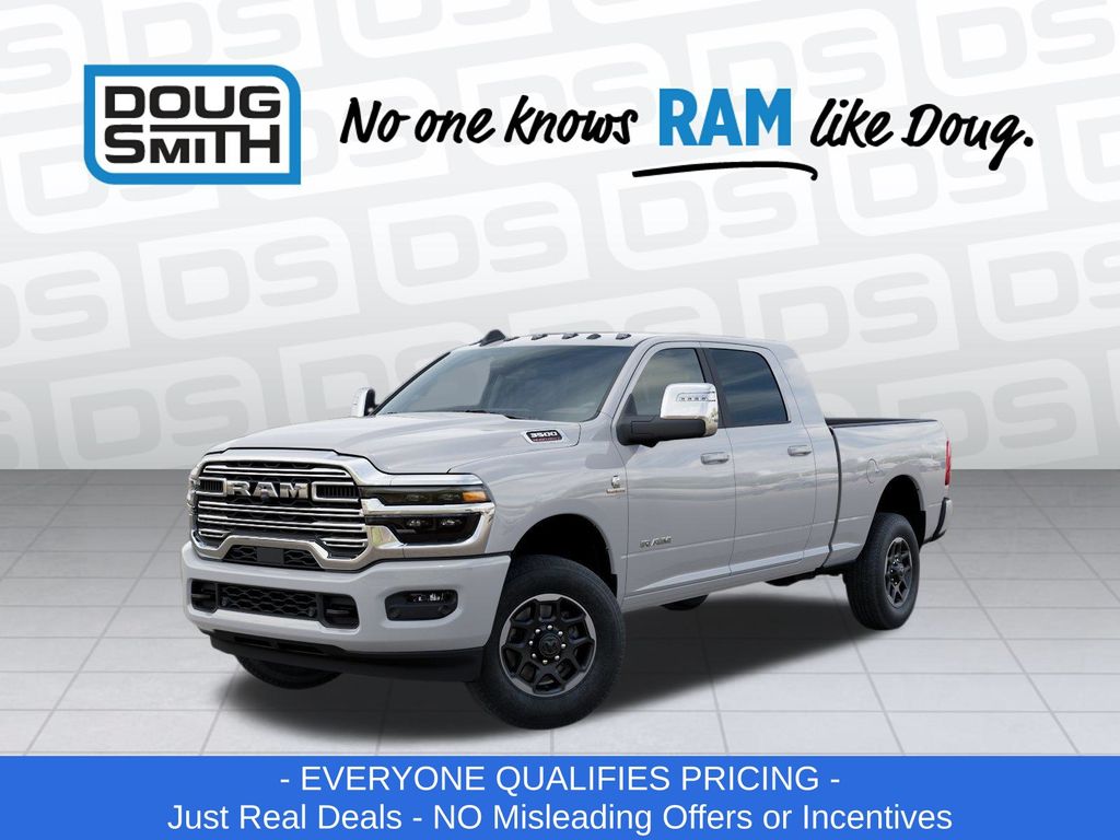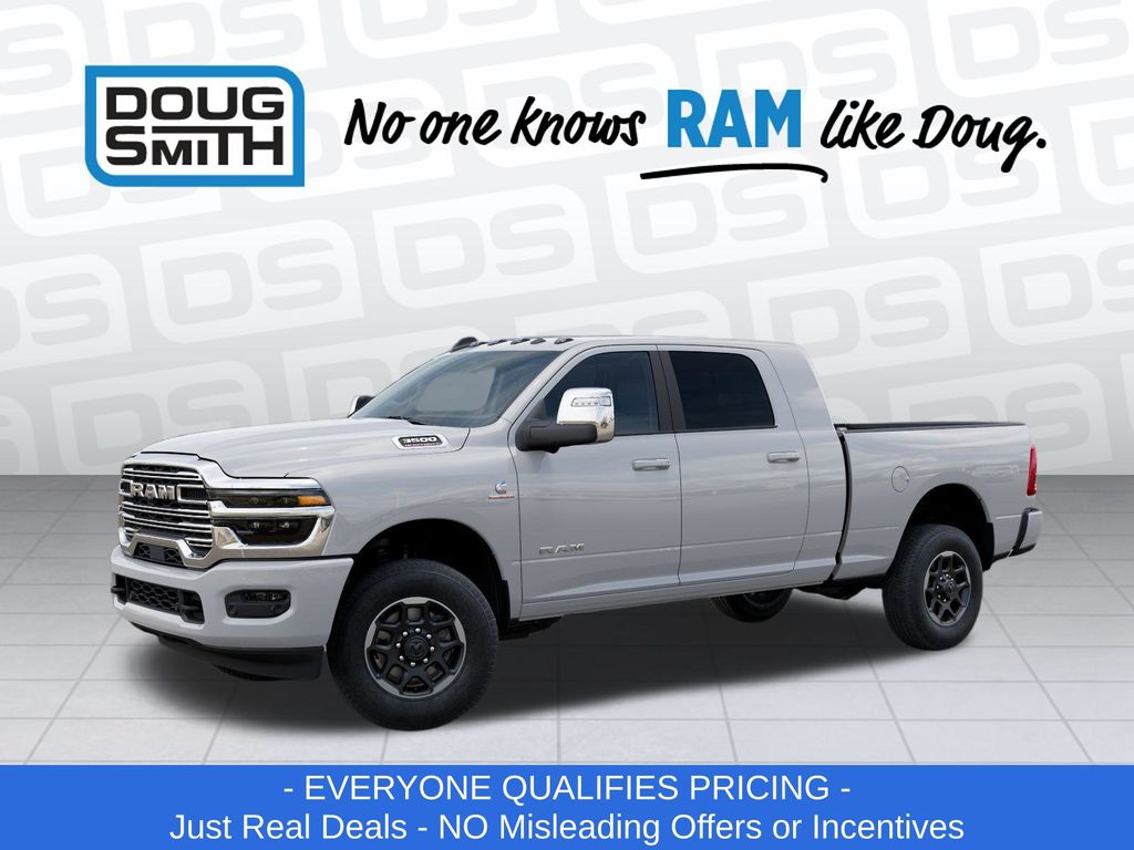 White 2026 Ram 3500 Laramie 4WD 8-Speed Automatic 6.7L I6 Price includes: $1000 - 2026 National Bonus Cash . Exp. 03/31/2026 - Sale Price Includes: $1,500 Trade-In Allowance Incentive Program for customers that trade in a 2015 or newer passenger vehicle with 100,000 miles or less. - Offer Exp. 03/31/2026 - See Doug Smith CDJR for full details.